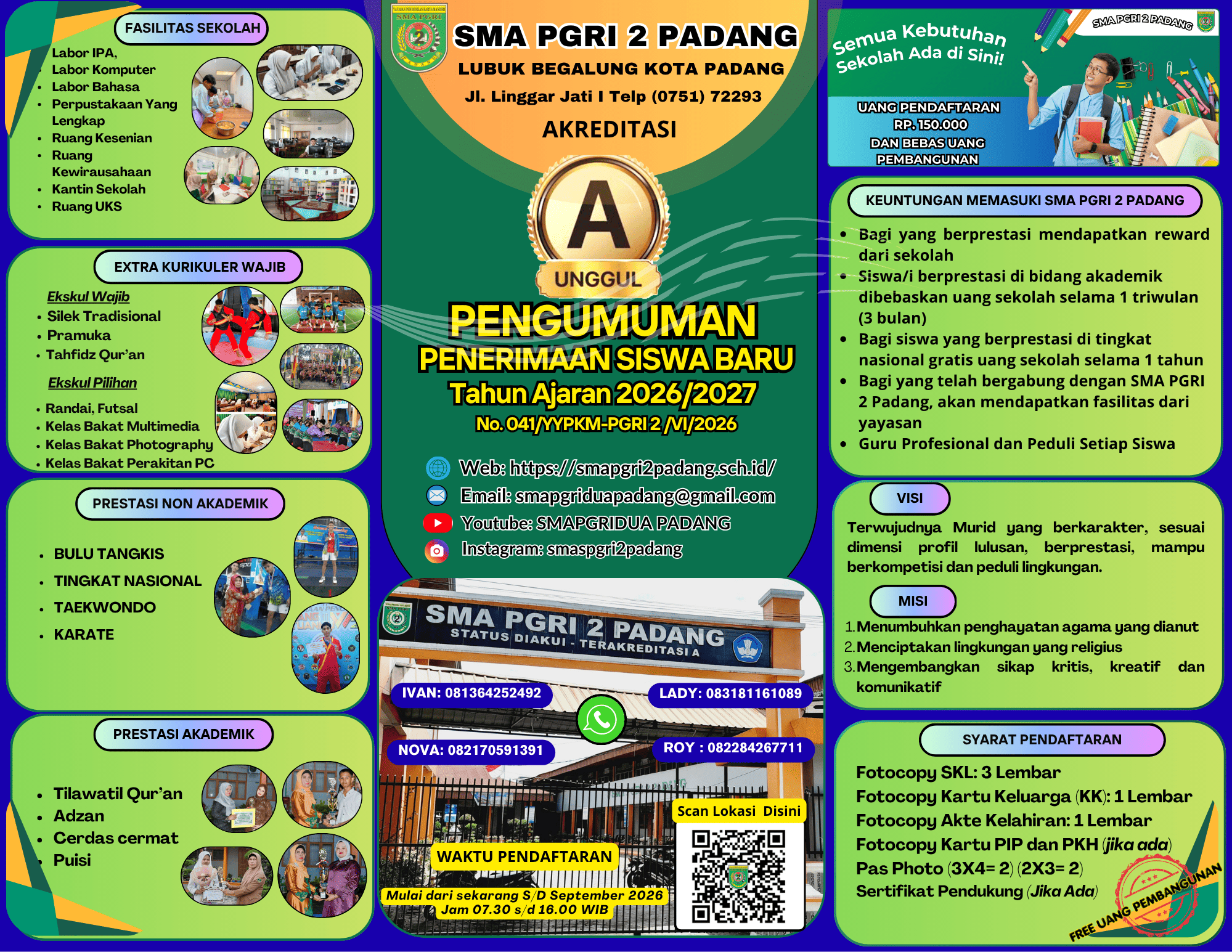 TELAH DIBUKA PENDAFTARAN PESERTA DIDIK BARU TAHUN PELAJARAN 2026-2027 DI SMA PGRI 2 PADANG “PENDAFTARAN SUDAH MULAI DIBUKA DARI SEKARANG!” YUK BURUAN DAFTAR